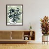 The artwork depicts a stylized bouquet of flowers in a vase with bold outline strokes. The background is washed in shades of green, lending a serene atmosphere to the piece. The composition is modern and abstract, focusing on form and simplicity. This framed art print was created by June Erica Vess and printed by Amanti Art in Madison WI. The print is giclee printed using fade-resistant inks for picture-perfect detail and incredible depth of color and finished with a 100% real wood frame. Individually made using traditional custom framing techniques, it has the quality you would expect from your local frame shop.