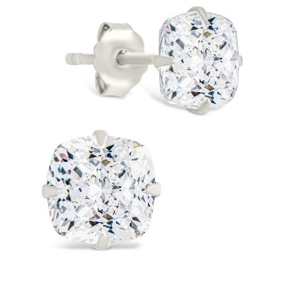 SHINE by Sterling Forever Sterling Silver Cushion Cut Prong Set Stud Earrings - Silver