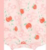 • All over print Minnie, floral, and peaches design; 3-snap closure for quick and easy diaper changes; Elastic leg cuff openings for a comfortable fit; Fashionable tie shoulder; Elastic neckline for easy dressing