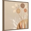 The artwork features an abstract representation of flowers with delicate, rounded shapes and soft earth tones. Stylized leaves and stems complement the floral forms, creating a serene and minimalistic composition. The subtle color palette enhances its modern and calming aesthetic. This canvas art print was created by Bella Eve and printed in Waunakee, WI. It is stretched across a solid surface to resist sagging. We use only premium, high-tension canvas. Our exclusive stretching techniques hide corner folds and provide a taut canvas surface. The artwork is authentically licensed. The canvas appears as if it is floating in the frame because it has a narrow gap between the edge of the canvas and the frame. Our canvas items are individually made using traditional custom framing techniques, it has the quality you would expect from your local frame shop.