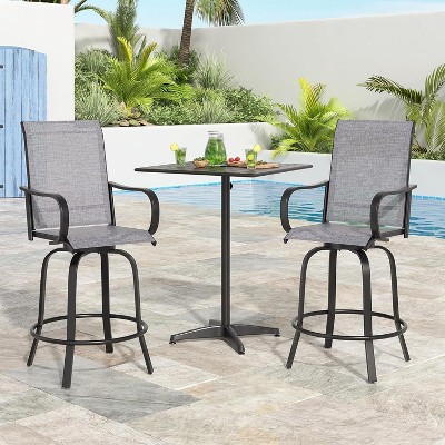 Set of 2 Swivel Outdoor Bar Stools with Textilene Fabric - 360° Rotation, All-Weather Ergonomic Design, Perfect for Balcony and Patio