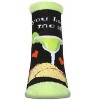 Talk about a perfect pair! Our Women's Tequila N Tacos Low Cut Socks are fun novelties you'll want to show off every Taco Tuesday. Part of our Wear Your Words Collection, these low cut socks sport the most delicious taco, with an extra large margarita on the front, and reads "We Go Together Like Tacos and Tequila," on the bottom. But that's not all, the saying also doubles as non-skid grippers to ensure a confident step. Featuring a contrasting heel, toe, and cuff, finished in a soft and fuzzy green knit that'll have you reaching for these time and time again.