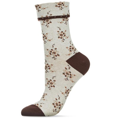 Floral print with contrasting cuff, heel, and toe
