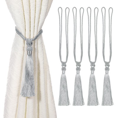 Unique Bargains Handmade Elegant Curtain Ties Holdbacks with Tassel for Home Office Hotel Decor Gray Blue 4 Pcs