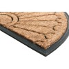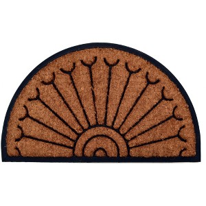 Ready to withstand heavy foot traffic, this 18-inch x 30-inch beige and black rubber and coir outdoor semi circle door mat is an ideal option for the front door or entrance way of your home or business. Crafted from rubber and coir, this mat is not only functional but is a visually appealing accessory to welcome people to your home or business. Add this decorative mat to create a practical yet inviting welcome to all who enter. 18-inch H x 30-inch W x 1-inch D