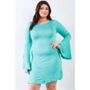 Slickblue Plus Size Bell Sleeve Long Sleeve Mini Dress, Slim Fit, Trendy Round Neck Design, Mint, Size 1XL