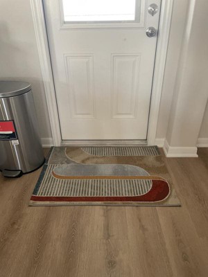 I was so happy shopping for this runner that you had a feature on your website to take a photo of where the runner would go. I checked out several that I liked and found the one whose colors looked perfect for my porch, and whose modern design I love. I just wish that I could have got one just one foot longer, and I would have been happier if non-slip padding were fused onto the bottom of the runner. At the short ends the runner curls up a bit, otherwise it looks quite nice on my porch and should help to have less wear and tear on the stain where the deck gets the most traffic.