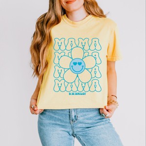 Product Name: Simply Sage Market S.W.Smiley Mama Stacked Flower Boxy Crop Top - S - Butter
