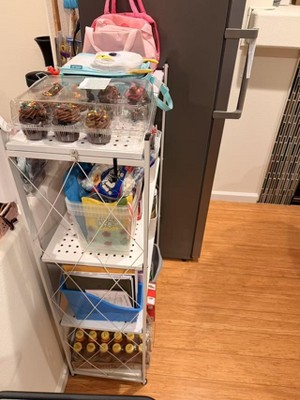 SUGIFT Foldable Storage Shelves with Wheels Heavy Duty Metal Rack 4 Tier Rolling Organizer for Garage Kitchen Office No Assembly