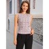 Tweed Top for Women Elegant Plaid Print Sleeveless Crew Neck Waist Buckle Back Zipper Blazer Vest. Top design features: sleeveless, crew neck, plaid print, back zipper, decorative buttons. This top is a must-have for the new season, add it to your wardrobe. This top is a knitted plaid print, which is comfortable to the touch and does not prick the skin. Suitable for matching with various suit pants and mini bags