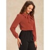 INSPIRE CHIC Women's Peter Pan Collar Bow Tie Neck Puff Long Sleeve Workwear Button Blouses Small Brick Red
