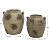 Adorn your living space with the charm of the Rhodes terracotta vase set. Boasting a delightful weathered grey hue, these captivating vases will blend seamlessly into any room decor theme. Crafted from pure terracotta, they feature unique dark circle patterns and exude an antique finish that effortlessly infuses a dash of rustic elegance into your abode. Plus, their inherent durable nature ensures a future filled with their pleasing presence. On top of it all, these vases come with handles for convenient transportation. Bring home this pair of Rhodes vases today and elevate your decor game!