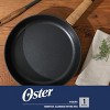 The Oster Oxburg 12 Inch Nonstick Aluminum Frying Pan in Black is a versatile cooking companion. Made from durable aluminum, it ensures excellent heat conductivity for consistent cooking results. The pan features a sleek black finish and a wood print accented handle with a soft grip, providing both style and comfort. This pan is coated with a high-quality nonstick surface for easy food release and cleanup. It is compatible with various stovetops, including gas, halogen, induction, electric, and vitroceramic. Hand washing is recommended to maintain the nonstick coating and overall quality. Whether cooking omelets or searing vegetables, this pan is a reliable addition to any kitchen.