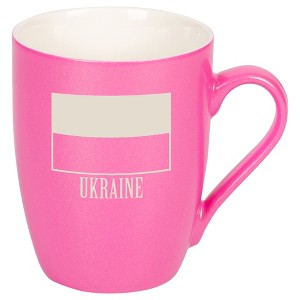 Show your support for Ukraine with this heartfelt ceramic mug, featuring a laser-etched outline of the Ukrainian flag and the word "Ukraine"; The sleek princess pink metallic finish adds a touch of sophistication, while the laser-engraved design ensures lasting beauty without fading or peeling; Holds approximately 10 ounces of your favorite beverage; Hand wash only is recommended; This mug is more than just a vessel for your favorite beverages; it's a daily reminder of the strength and resilience of the Ukrainian people; Ideal for enjoying your favorite coffee, tea or hot cocoa; Contained in protective packaging; Ready for easy gifting