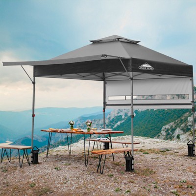 EAGLE PEAK 17x10ft Pop Up Canopy with Awnings, Heavy Duty Instant Beach Sun Shelter with Adjustable Dual Half Awnings, 4 Sandbags (Blue)