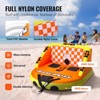 Durable & Resistant Materials: Our boat tubes and towables are covered with robust nylon, featuring 840D nylon on the bottom and periphery and 420D nylon on the back. This construction provides superior UV protection and resistance to aging and punctures, ensuring the vibrant design remains fade-resistant. Enjoy your water fun in seas, lakes, and rivers with our tough and durable boat tube.