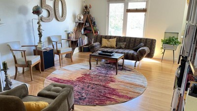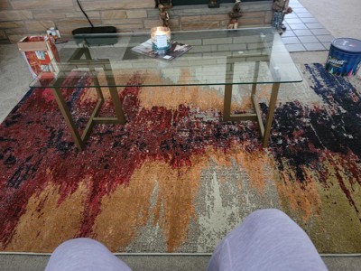 The rug looks exactly as seen in the product video, which shows the true colors as compared to the product photos, which are lighter/brighter than the true coloration of the rug. It is vibrant, soft, and it was rolled very neatly; I did not have fabric wrinkles or folds when unrolling the item in my space. The edges are curled upward, but an easy fix. It stays in place with a rug pad very well, too. Note it's easy for the corner stitching to pull. There was also a lingering manufacturing smell for two weeks, though it was unrolled, and I had my windows open and fan on for a straight week. It's not too bad, and will dissipate. I vacuumed with a rug attachment and it picked up some debris/dust, which may have also helped relieve smell.