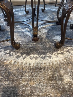 The overall tone of the rug is gearing toward blue-ish, rather than brown, so beware of this. The quality is good, no creases, no rolled up corners, sitting atop of the pad makes it practically unmovable, which is what we needed (we have a dog who likes to run around, so rugs were constantly bunched and scrunched). Overall, we are pleased with the quality, delivery speed, and the price. Would recommend.