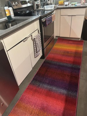 The colors in this rug are absolutely amazing. There is a lot of yellow in my kitchen, which I don’t love. I do love that the yellow in the rug matches the kitchen, but all the other colors make the room come alive.