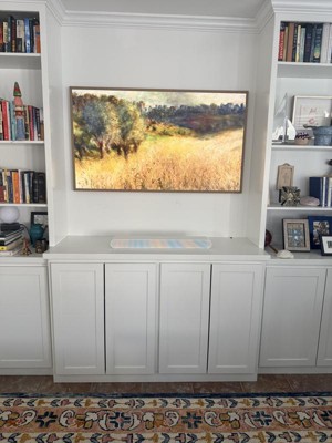 [This review was collected as part of a promotion.] First frame I have purchased. Sits flush against the wall. Love the sutp brightness. The integration of AI in the interface is great and easy to use. Texture and vibrancy adjust automatically along with the brightness.