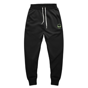 Embrace an out of this world look in our Alien Fleece Jogger Sweatpants, adding a touch of space to your wardrobe! Step into the world of relaxed streetwise fashion with these jogger pants. They are your new go-to for effortless style and unmatched comfort. Crafted from lightweight, ultra soft sponge fleece, these pants will quickly become your favorite, whether you're lounging at home or out and about. The elastic waistband and drawcord allow for a comfortable, personalized fit, while the cuffed hem adds a little flair to your outfit. Made with a blend of 52 percent cotton and 48 percent polyester fleece, these sweatpants offer both warmth and breathability. Perfect for late-night study marathons, casual coffee hangouts with friends, cozy days spent watching your favorite shows, fun outdoor photoshoots, or traveling in style for your next weekend getaway. Embrace the freedom of expression and cozy confidence with these fleece jogger pants, a true staple for anyone looking to blend comfort with a sense of style. Soft fleece for warmth and breathability. Mens adult sizing. Comes in color: Black. Size Medium