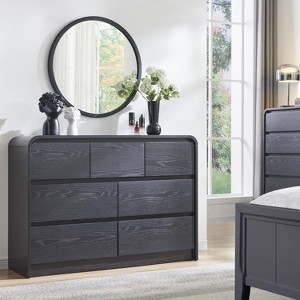 SinCiDo Modern 7 Drawers Dresser 47" Wide Chests of Drawers w/ Curved Profile Design Natural Texture for Bedroom, Living Room, Black