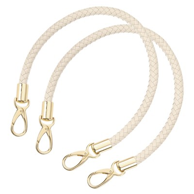 Unique Bargains PU Leather Braided Replacement Metal Buckles Purse Strap 2 Pcs Beige White/Gold 24"