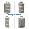 Special design allows for attachment to vests belts and waist packs