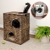 THE LICKER STORE Jaxon 18" Modern Classic 2-Tier Handwoven Hyacinth Rectangular 5-Hole Cat Condo with 2 Machine-Washable Cushions, Brown