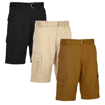 Blu Rock Men's Modern Fit Cotton Flex Stretch Cargo Shorts With Belt- 3 Pack