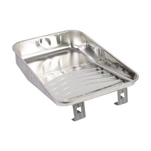 The Wooster Hefty Deep-Well Steel 13 in. W X 19 in. L 3 qt Paint Tray handles big jobs with large width and capacity. The paint tray is made of heavy-gauge, rust-resistant steel with a bright finish. Sturdy, ribbed roll off area and legs to keep the tray level for even loading.