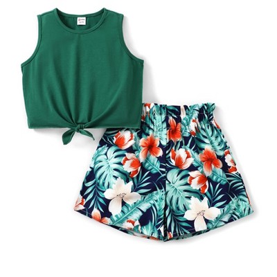 PATPAT Girls 2 piece Floral Flower Hawaiian Outfits Crop Top and Short Sets Girls Summer Outfits Size 4-8Y