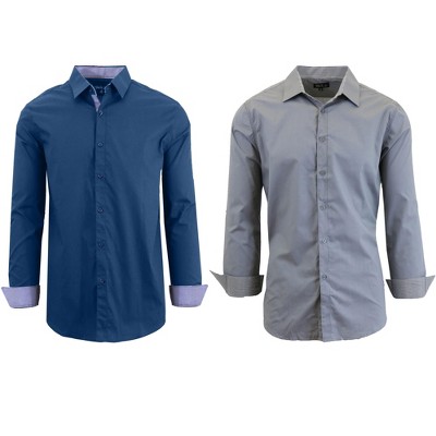 Galaxy By Harvic Men's Long Sleeve Slim-Fit Solid Dress Shirts-2 Pack