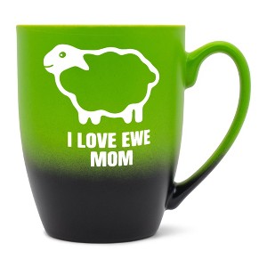 Elanze Designs Mother's Day Appreciation Coffee Cup Mug 12 Ounce Ceramic With Ombre Gradient Sheep Love Ewe Mom Green and Black