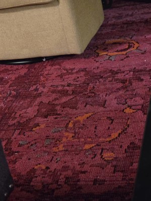 Love the color of this magenta rug. Carpet fits the price. Some orange and periwinkle colors throughout.