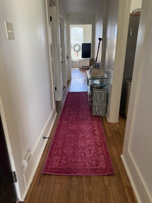 This is the cutest runner I’ve owned. I’m not one for pink rugs, but this is gorgeous and stands out in the best way. It is hot pink, but not as pink as the photos. It’s hot pink in the ‘Art Deco/Hollywood Regency/ Vintage’ type of way and it’s perfect. I’m not sure as a large rectangular rug but the runner is amazing.
