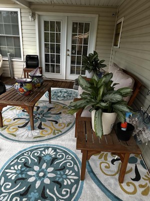 I bought this last week and it arrived this week and I couldn't be happier! It's high quality, very bright colors, super soft on the feet and looks great on the patio for that finished touch.