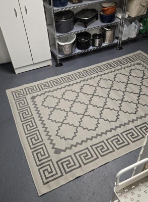 [This review was collected as part of a promotion.] I absolutely love this outdoor rug. It matches perfectly with my color scheme and brings in some much needed design. My deck is grey but the railing is white and the spindles are black and my furniture is greyish/brownish with black arms so this matches perfectly and ties everything together. I like that it's not super thick because when it does get wet, it dries out very quickly and seems to be holding up well to the intense heat of the south. It's the perfect size which covers the middle between my sofa and chairs and is just enough under the coffee table. Seems to be of decent quality but can't vouch (yet) for the quality. Will see after this season is over). I would definitely recommend this if you want a decent rug that looks high quality and will fit in with any color scheme.