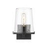 Indulgent with transitional style that borrows from the nautical sphere, the Callista one-light vanity light transforms bathrooms into sophisticated yet livable spaces of comfort. This fixture features an interesting tapered silhouette thanks to a delicate clear glass shade shielding a singular bulb mount. Hand-crafted to ensure artistry and presentation, its bold matte black finish steel frame and wall mount delivers on cool contrast and adds definition suitable to impress. Dimmable: Yes Shade Included: Yes
