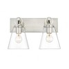 Create a stunning look of fresh design when adding ambient lighting to a custom bath space. Contemporary and inviting, this two-light vanity bath light from the Harper collection keeps it simple yet decadent with a sleek brushed nickel finish over steel composing a rectangular wall mount and accents. Clear glass conical shades add a hint of nautical inspiration. Dimmable: Yes Shade Included: Yes