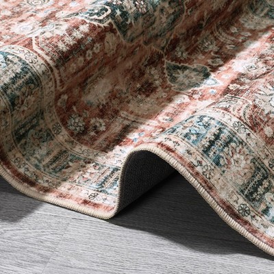 10'x13' Solid Low-Pile Area-Rug, Indoor Outdoor Washable Rugs, Non Slip Door Mat, Non Shedding, Pet-Friendly Rug for Living Room Bedroom, Brick Red