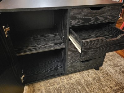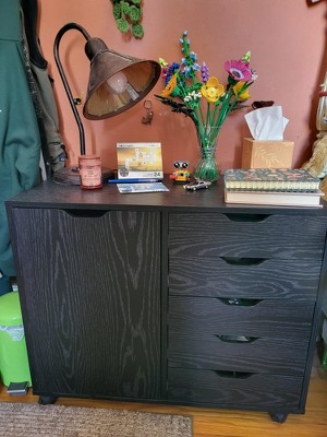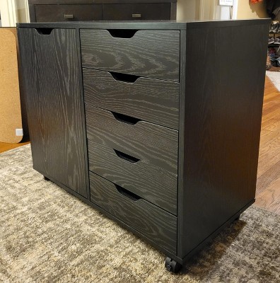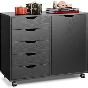 GALAXHERO Mobile File Cabinet 5-Drawer Wood Dresser Chest with Door, Mobile Printer Stand for Home Office, Black