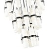A trio of round tiers creates a chic, familiar silhouette for a striking, modern 27-light chandelier from the Cayden collection. Each light is suspended vertically, in three round tiers, and features a layered shade with a cylinder of etched opal glass overlaid with clear textured glass and a decorative metal cuff. The chandelier features a beautiful brushed nickel finish, perfect for modern living and dining spaces.
