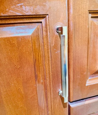 [This review was collected as part of a promotion.] I put this on my cabinet and it looks pretty and makes it really easy to pull out! I like the chrome color and think it blends in nicely with everything else in my kitchen.