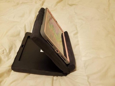 [This review was collected as part of a promotion.] I didn't know how much I needed this until I used it. I used to use a combination of my legs and pillows to prop up the tablet. Now, I just use the Pillow Pad which brings the tablet higher and adjust the angle for a much more comfortable (and ergonomically better) position. Other tablet stands don't have the adjustable hinge and are bulky. Already bought some more to give to friends as gifts.