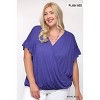 Slickblue Women's Plus Size Ruffle Sleeve Surplice Top, Viscose Knit Blouse, Stretchy Fit, Royal Blue/Tomato, XL-2XL - 1 of 4