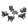 Set Includes: Two (2) patio club chair, One (1) Left Arm patio club chair, One (1) Right Arm patio club chair, One (1) Armless patio club chair, Five (5) deep seat back cushion, Five (5) deep seat rest cushion, and One (1) 37" Wide Inch Patio Conversation table