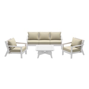 Set Includes: Two (2) patio club chair, One (1) Left Arm patio club chair, One (1) Right Arm patio club chair, One (1) Armless patio club chair, Five (5) deep seat back cushion, Five (5) deep seat rest cushion, and One (1) 37" Wide Inch Patio Conversation table