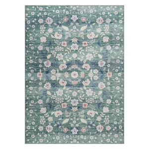 8'x10' Washable Floral Rugs for Living Room Area Rugs Non Slip Low Pile Carpet for Office Bedroom Kids Room Bedside Green: Machine Made, TPR Backing