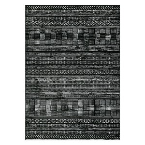 2'x6' Boho Textured Design for Living Room Runner Non Slip Low-Pile Soft Print Bedroom Stain Resistant Playroom Carpet Office Black